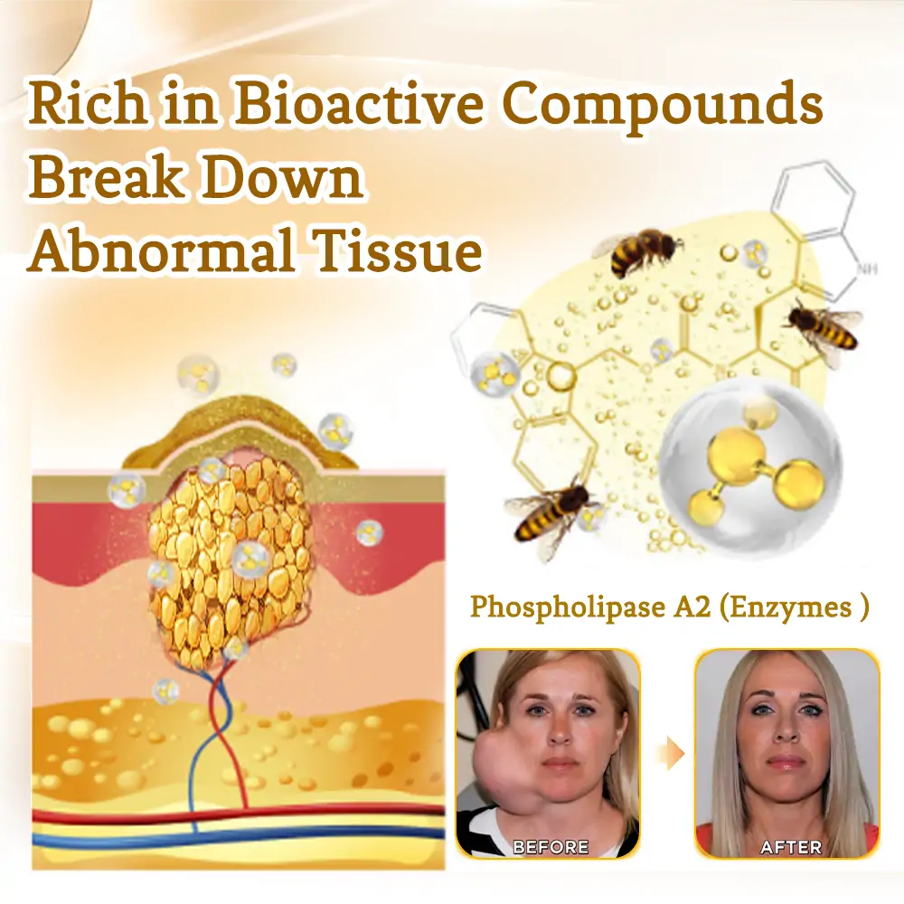 𝐁𝐞𝐞 𝐕𝐞𝐧𝐨𝐦 Extract: Naturally active 𝐁𝐞𝐞 𝐕𝐞𝐧𝐨𝐦 peptide is extracted from 𝐁𝐞𝐞 𝐕𝐞𝐧𝐨𝐦 produced by New Zealand honeybees. It is obtained by stimulating bees to excrete venom using ether anesthesia. This natural substance poses no harm to the human body and has been recognized for its potential benefits to the lymphatic system and metabolism acceleration. It can enhance the pressure difference in lymphatic vessels, accelerate metabolism, and facilitate waste elimination. Moreover, 𝐁𝐞𝐞 𝐕𝐞𝐧𝐨𝐦 peptide acts as a relatively safe body regulator. Therefore, it can stimulate the activity of lymphatic cells and blood cells, accelerate blood circulation and lymphatic fluid circulation, and effectively expedite energy expenditure and fat consumption.