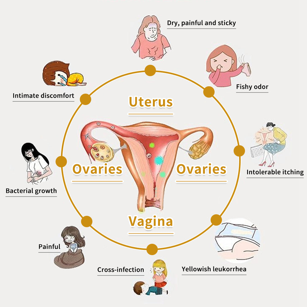Women's special body structure makes their vagina and uterus prone to accumulate toxins and body waste. Frequent sexual intercourse, childbirth, and poor lifestyle habits often exacerbate such conditions and it’s often accompanied by dry, loose mucous membranes, frequent burning sensations, itching, dull color, recurrent inflammation, and an unpleasant odor. It can also happen to women who lack estrogen in their bodies due to hysterectomy or menopause.