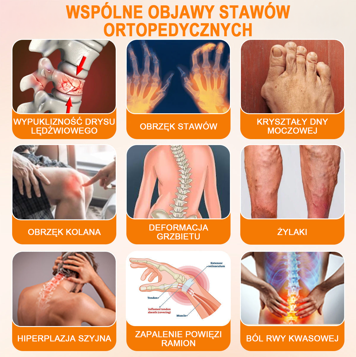 Zgodnie z danymi statystycznymi, 35% populacji na całym świecie cierpi z powodu problemów ze stawami, przy czym 1 na 5 osób doświadcza różnych stopni problemów ze stawami. Łagodne przypadki obejmują schorzenia takie jak zapalenie stawów, choroby reumatyczne i dnę moczanową, objawiające się bólem, sztywnością, opuchlizną, trudnościami w poruszaniu się, zmęczeniem i ograniczoną ruchomością. W przypadkach ciężkich mogą wystąpić deformacje stawów, gorączka i intensywny ból stawów, prowadzące do przewlekłego bólu i niepełnosprawności. W najcięższych przypadkach choroby ortopedyczne mogą wywołać komplikacje zagrażające życiu.
