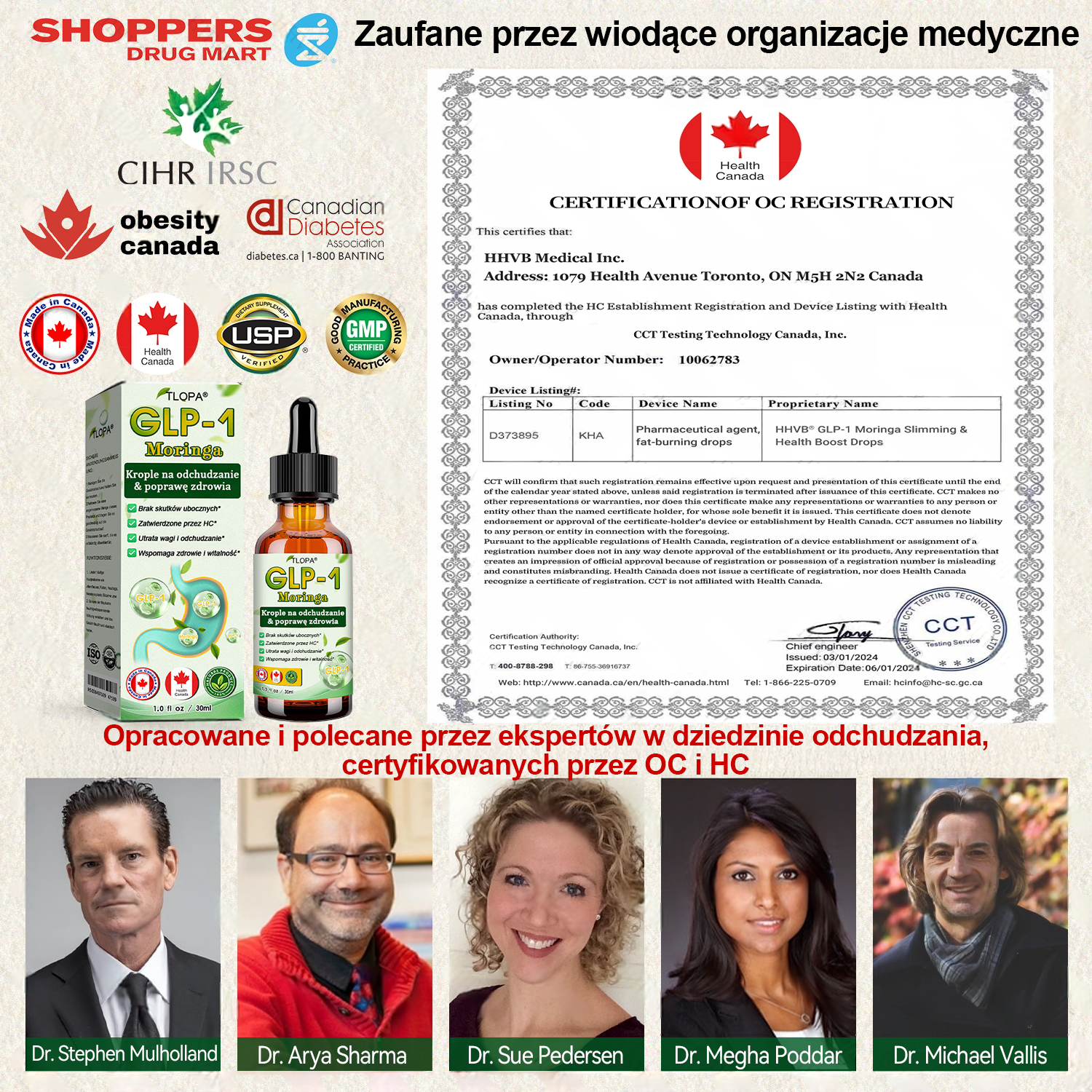 Opracowane i wyprodukowane w laboratorium certyfikowanym przez Health Canada