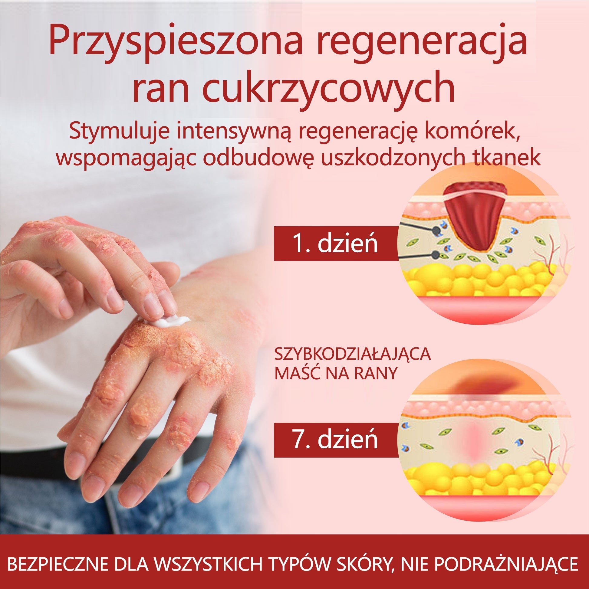 Ten wszechstronny krem jest skuteczny nie tylko na owrzodzenia stóp, ale również na skaleczenia, zadrapania i owrzodzenia na innych częściach ciała, oferując kompleksową opiekę i wsparcie dla pacjentów z cukrzycą.