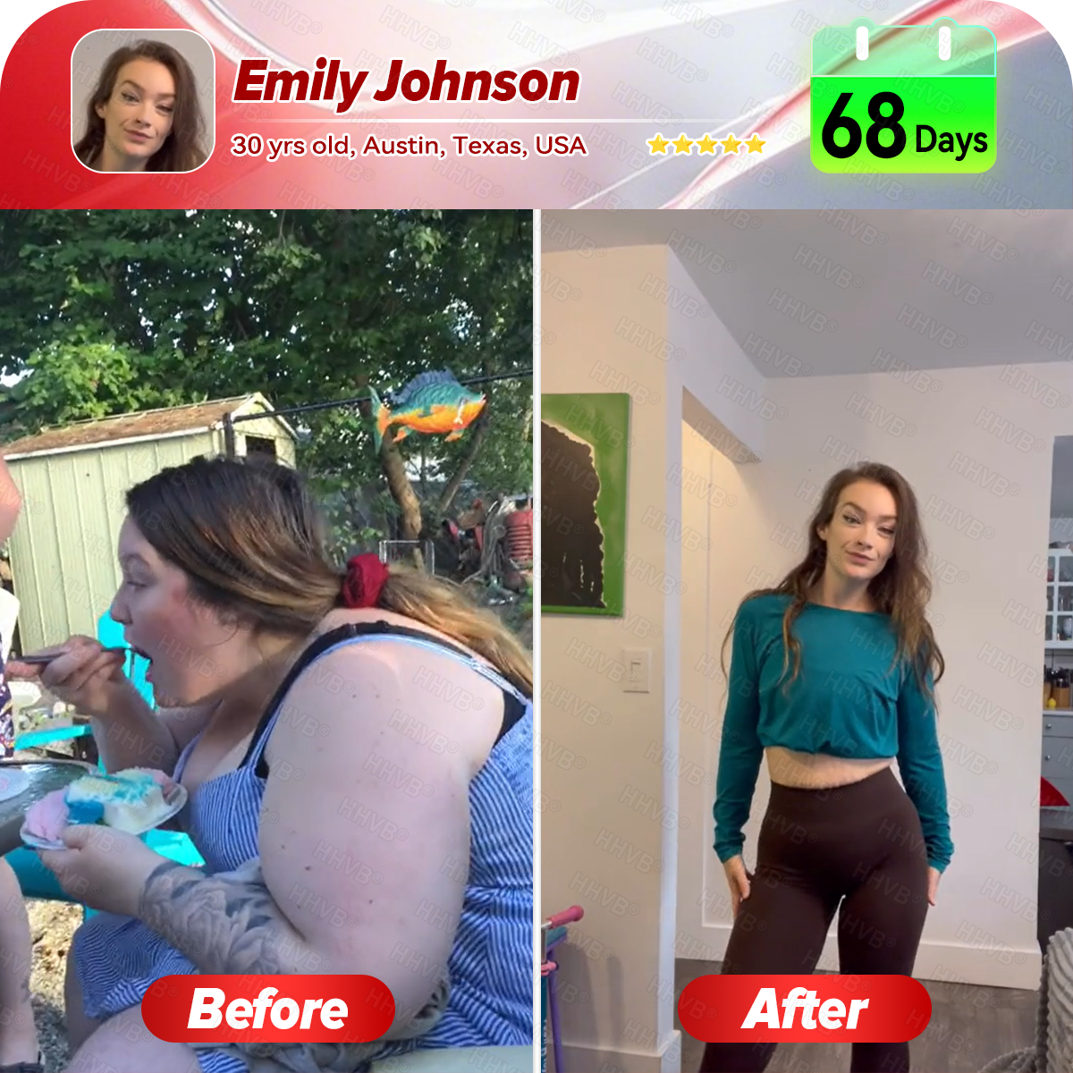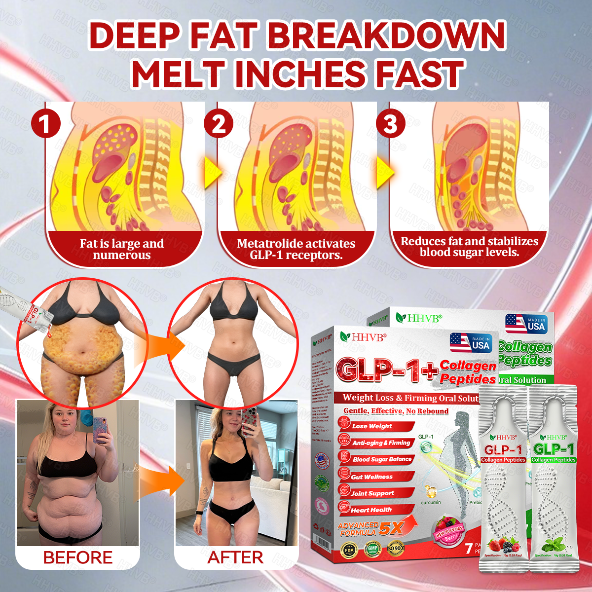 Badania kliniczne wykazały, że użytkownicy roztworu doustnego HHVB®GLP-1+Collagen Peptides Weight Loss&Firming Oral Solution osiągnęli imponujące rezultaty. Niektórzy użytkownicy stracili nawet 6–8 funtów opornej tkanki tłuszczowej w ciągu zaledwie jednego tygodnia. Przyjmując tylko jedną dawkę dziennie, skutecznie spala tłuszcz trzewny i brzuszny, pomagając w wyrzeźbieniu szczuplejszego ciała — bez konieczności wykonywania intensywnych ćwiczeń.