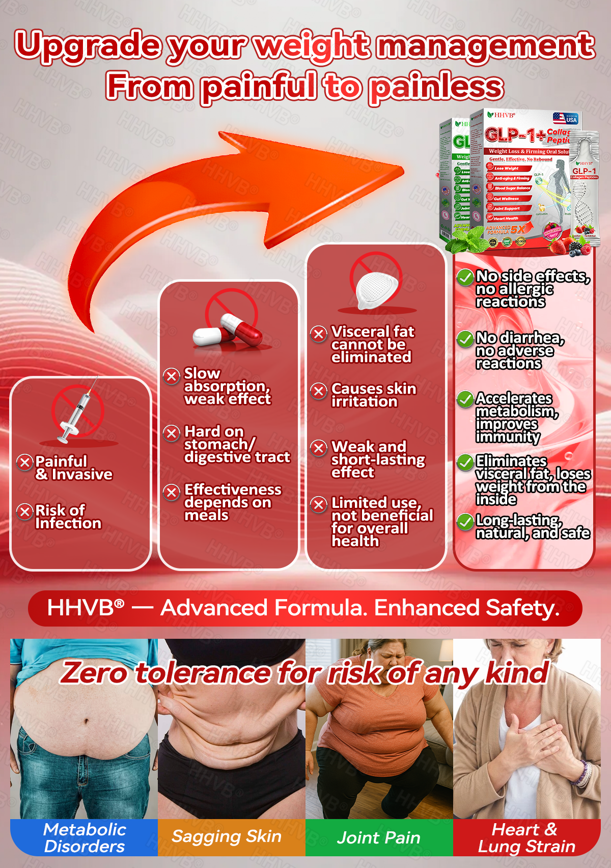 HHVB®GLP-1+Peptydy Kolagenu Roztwór doustny na odchudzanie i ujędrnianie. Opracowany przez międzynarodowy zespół ekspertów w dziedzinie metabolicznej i endokrynologii, roztwór doustny GLP-1 + Peptydy Kolagenu stanowi przełomową synergię w kontroli wagi i regeneracji skóry. Technologia GLP-1 precyzyjnie oddziałuje na ośrodek metaboliczny organizmu, regulując apetyt, przyspieszając rozkład tłuszczu i przywracając równowagę energetyczną. Peptydy Kolagenu działają głęboko w skórze właściwej, naprawiając ubytki strukturalne spowodowane redukcją tkanki tłuszczowej, odbudowując sieć podporową skóry i widocznie poprawiając jędrność i elastyczność. Badania kliniczne pokazują, że ta formuła o podwójnym działaniu przynosi wymierne rezultaty – redukuje tkankę tłuszczową, jednocześnie poprawiając napięcie skóry w krótkim czasie stosowania. Oferuje naukowo potwierdzone rozwiązanie dla zrównoważonego zdrowia, jędrności i długotrwałej witalności.