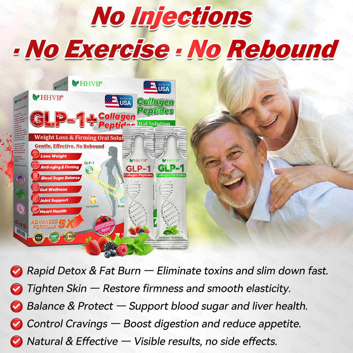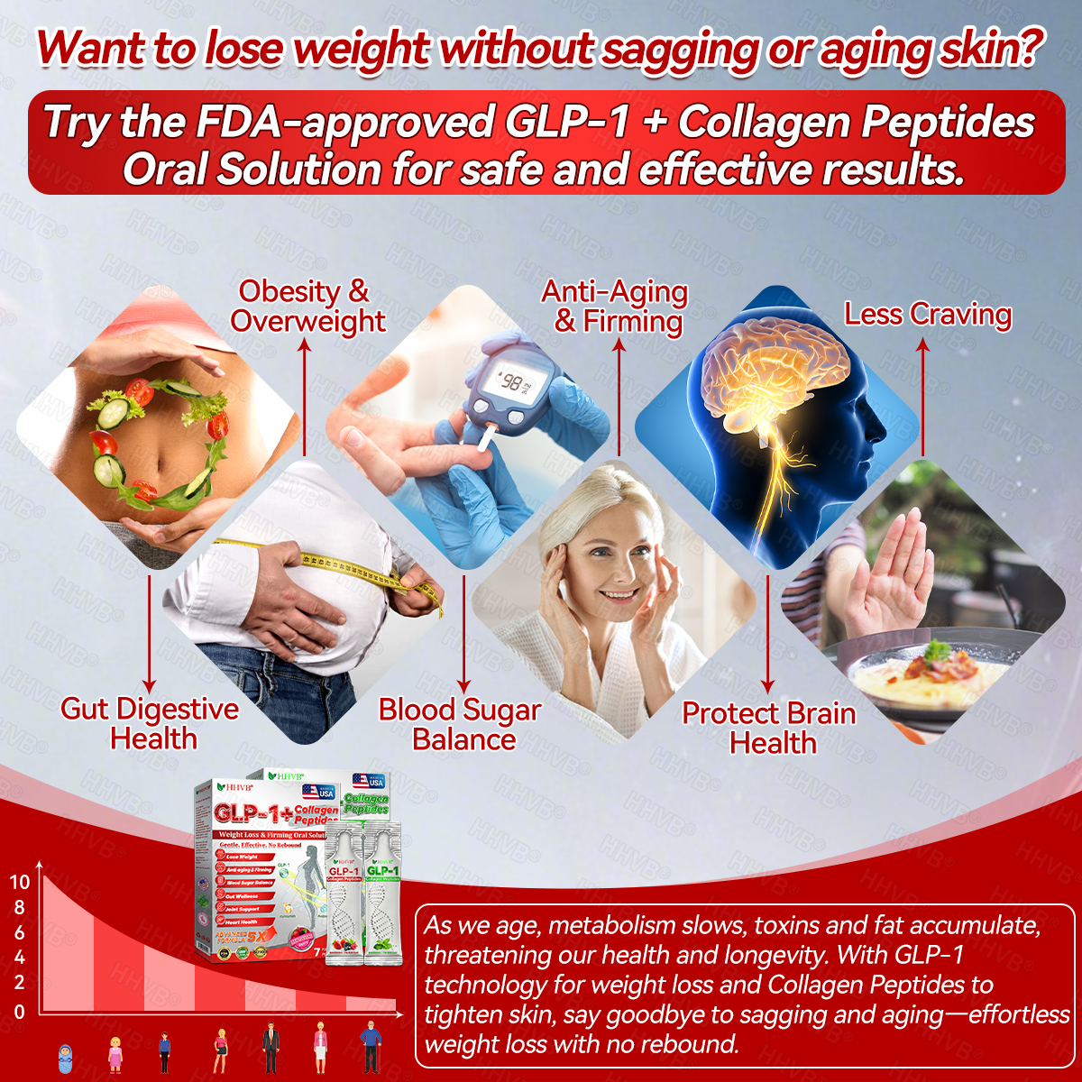 Klinicznie potwierdzony przez endokrynologów, doustny roztwór HHVB® GLP-1 + Collagen Peptides w widoczny sposób poprawia kondycję skóry, redukuje otyłość i poprawia jej jędrność oraz ogólny stan zdrowia już w ciągu 7 dni.